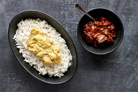 - Serve with the rice, flatbread and a generous dollop of The Bay Tree’s Awesome Aubergine Pickle.